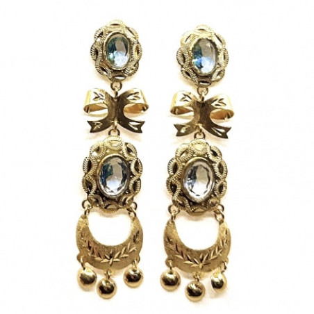 PENDIENTES  CUBANAS ORO 18KT DOBLE ROSETA LAZO Y  LUNA TALLADA MEDIDAS 55X14 MM PESO 4,60